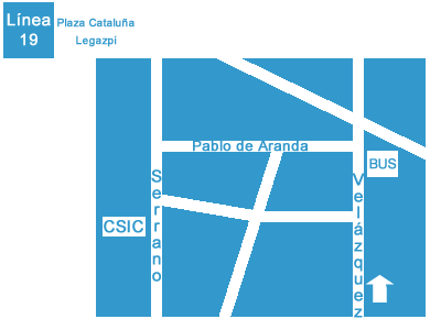 Desde la Estación de Atocha:![]() Dejar el bus en la parada Velázquez-Joaquín Costa. Subir por la calle de Veláquez hasta confluir con la calle Pablo Aranda (a la izquierda). Al final se encuentra la calle de Serrano y girar de nuevo a la izquierda. Desde el aeropuerto: Tomar la línea Exprés Aeropuerto hasta parada O`Donnel. Luego, cambie a la Línea 6 de metro dirección República Argentina. Al salir del metro elija la salida a la Calle de Juan de la Cierva. Al finalizar esta calle se encontrará con la Calle de Serrano, gire a la izquierda hasta localizar el número 117. Desde la Estación Sur (Méndez Álvaro): Se recomienda tomar el metro. |